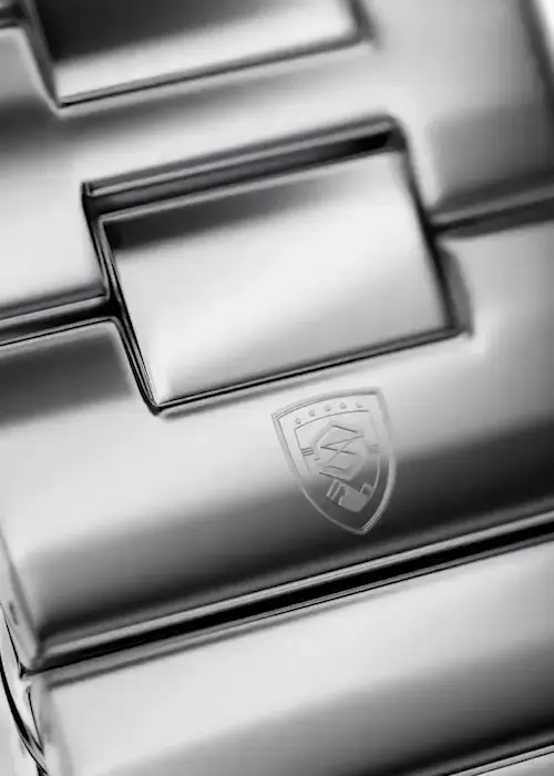 Construido completamente en acero inoxidable, que le aporta al reloj la mejor resistencia a marcas típicas de relojería y una apariencia permanente en su estado original.
